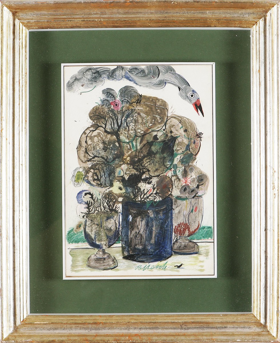 POSSENTI ANTONIO (n. 1933) Senza Titolo. Tecnica mista su cartone, cm 24,5x34,5. Autentica dell'artista su foto. Firmato in basso al centro. Cornice presente.