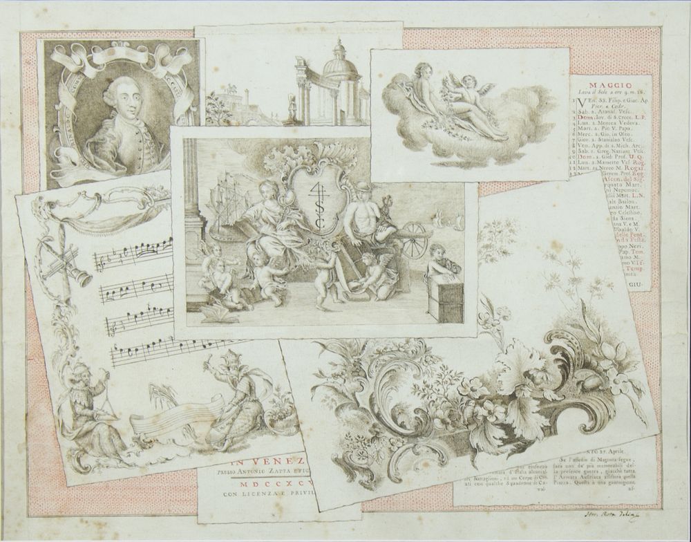 Lotto di 2 trompe l'oeil dipinti a china su carta firmati Rota. cm. 37x53.