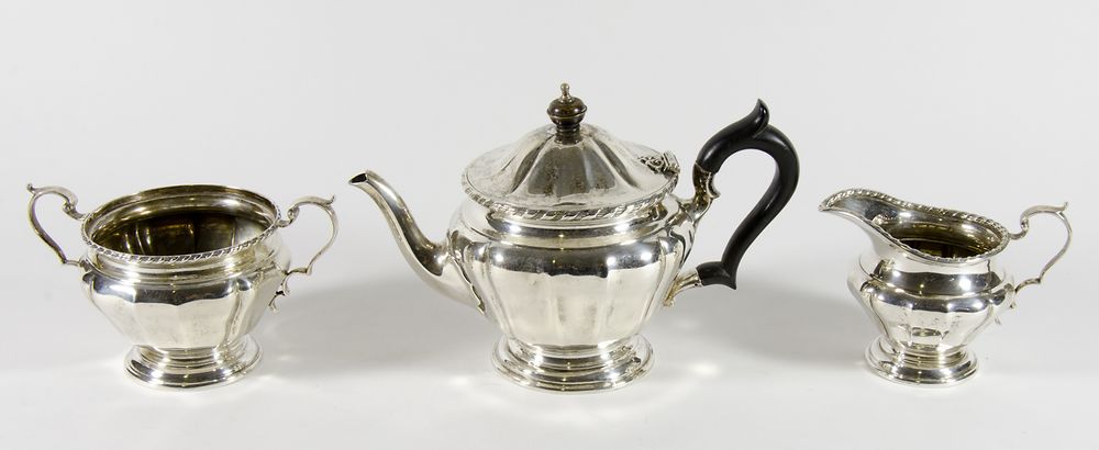 Pearce & Sons Servizio da thè in argento composto da teiera, lattiera e zuccheriera. Londra 1885. gr. tot 960.
