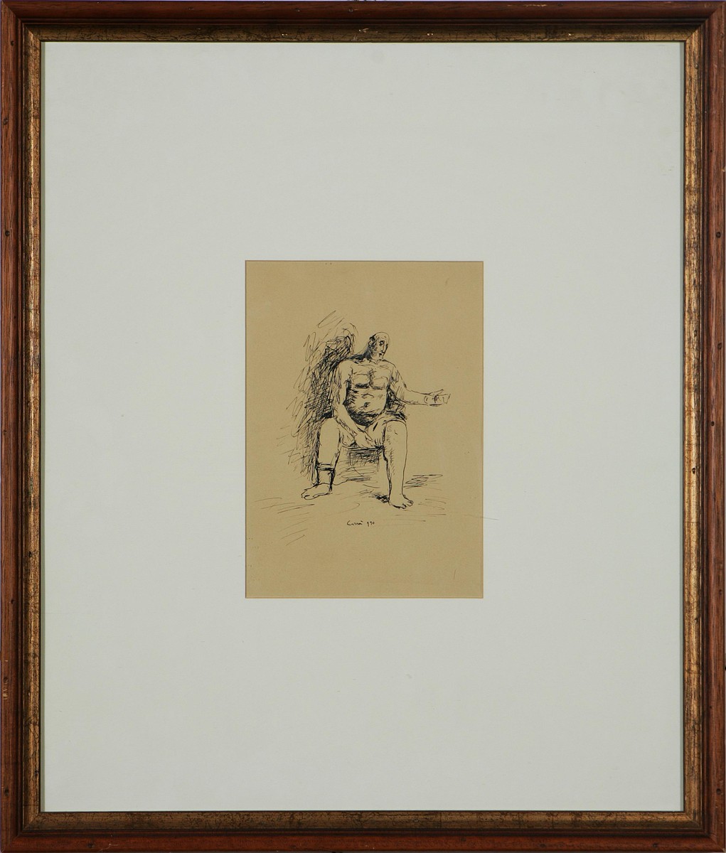 CARRA' CARLO (1881 - 1966) Uomo. 1930 Inchiostro su carta, cm 18,5x26. Opera archiviata presso l'archivio dell'artista Carrà come da documentazione fotografica allegata riportante il relativo n. d'inventario e firmata da Massimo Carrà. Firma in basso. Cornice presente.