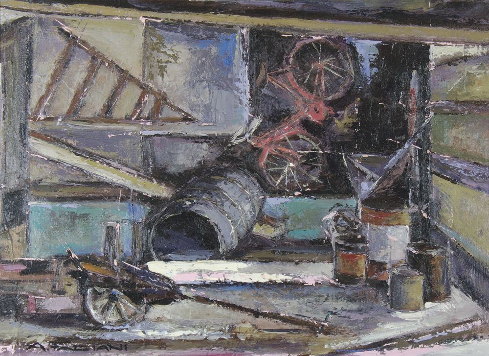 A. Fabiani "Bicicletta rossa" cm. 50x70 - olio su tela Firmato b. a s.