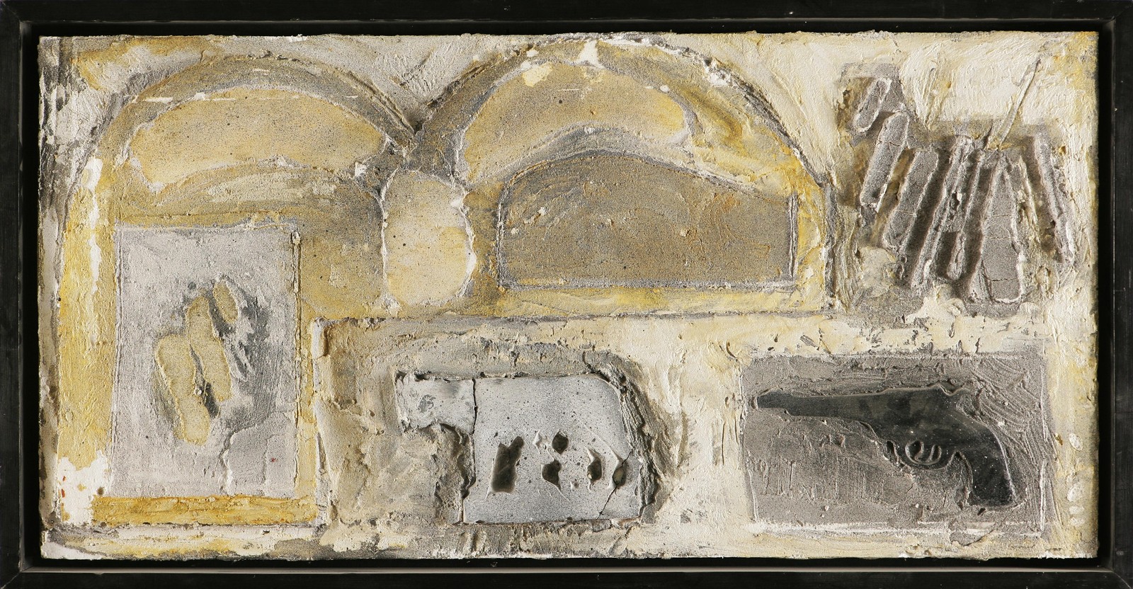 DEGANI EUGENIO (1923 - 2000) La lupa di Roma. 1956 Tecnica mista su polistirolo (gesso e acrilico), cm 100x50x4. Firma e data in basso a destra. Cornice presente.
