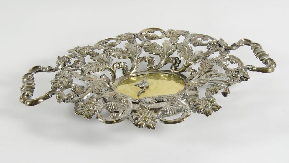 Centrotavola ovale in argento lavorato a traforo a motivi floreali. cm....