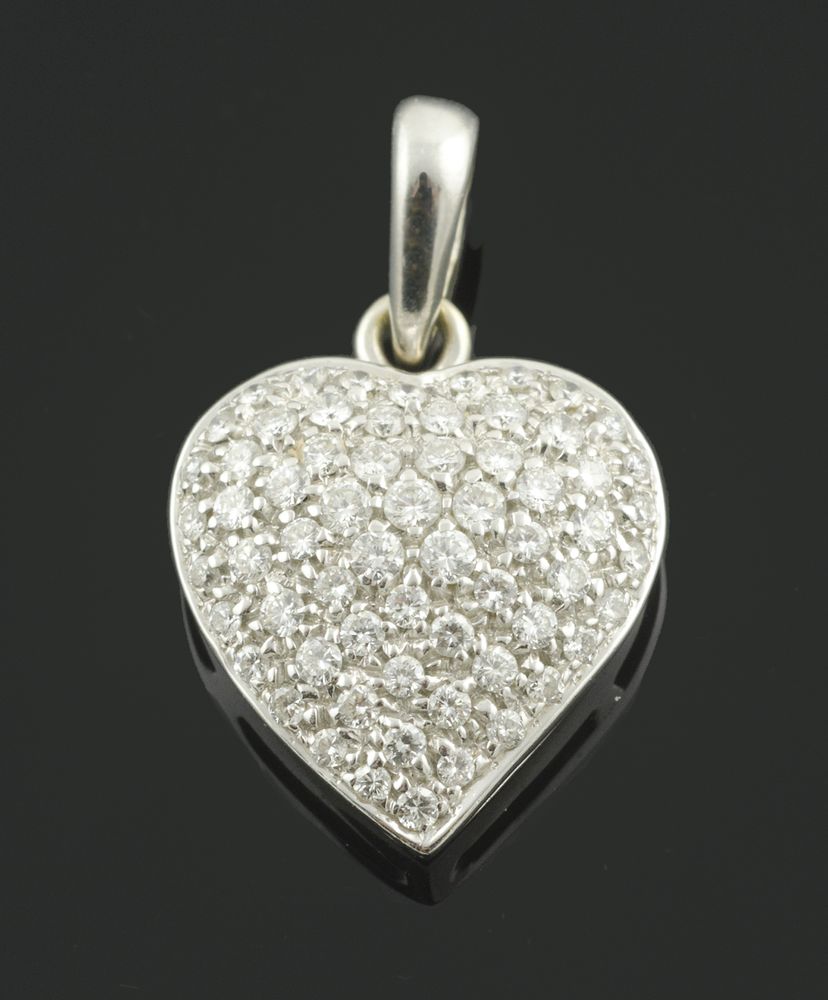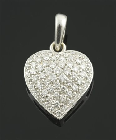 Pendente in oro bianco a forma di cuore con pavè di diamanti per ca tot ct 1,30