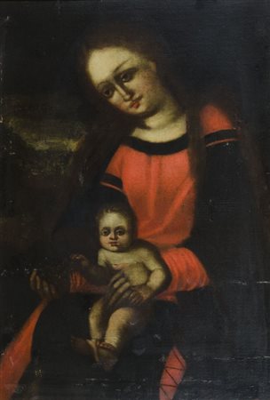 Maestro inizio XIX secolo "Madonna con bambino" cm. 76x52 - olio su tela foderata