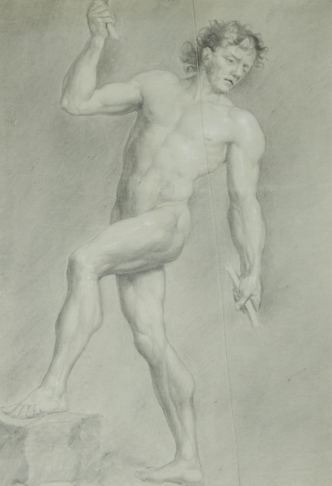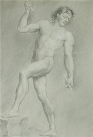 Maestro neoclassico della fine XVIII secolo "Studi di nudi maschili" -due disegni a matita su carta, cm. 70x50.
