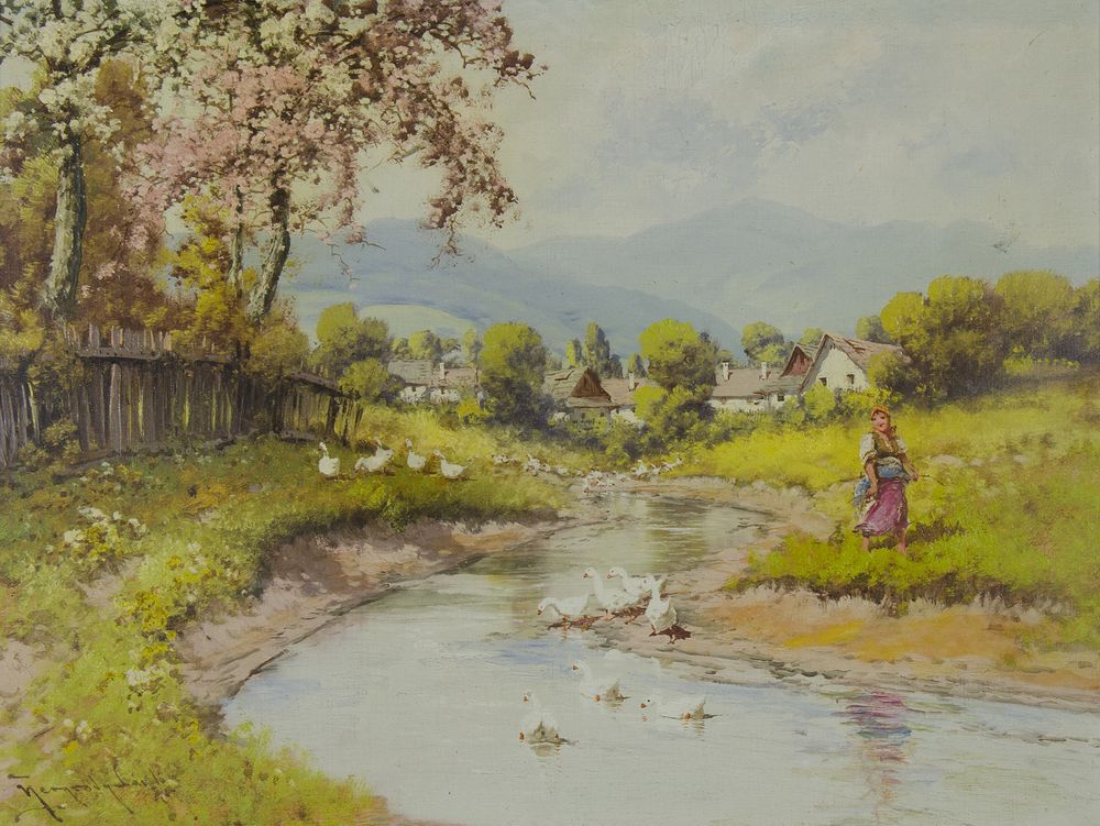 Laszlo Neogrady Budapest 1896-1962 "Giornata di sole" cm. 60x80 - olio su cartone Firmato b. a s.