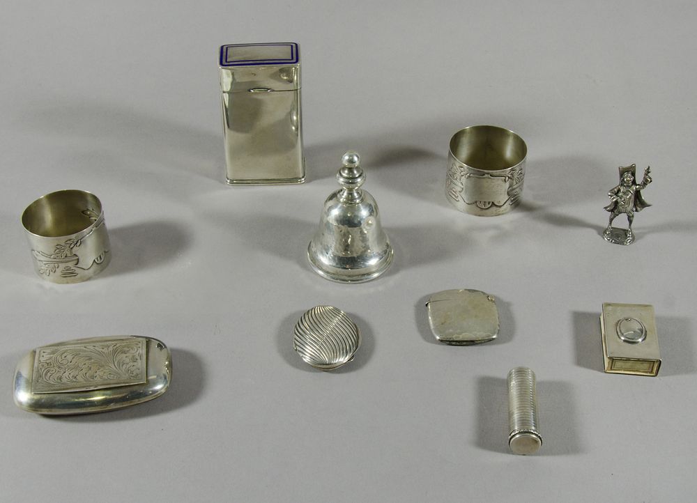 Lotto di vari oggetti in argento tra cui satolette. gr. tot 390.