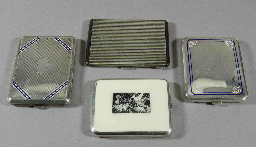Lotto di 4 scatolette in argento decorate a smalti policromi.