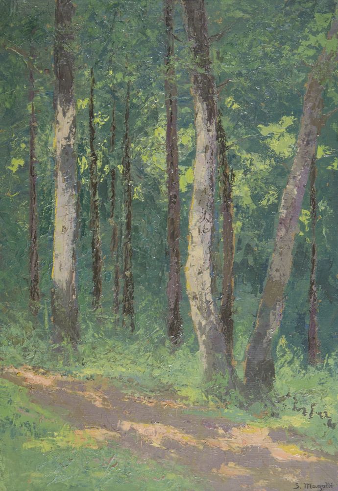 Srecko Magolic 1860-1943 "Alberi nel bosco" cm. 48x33 - olio su cartone Firmato b. a d.