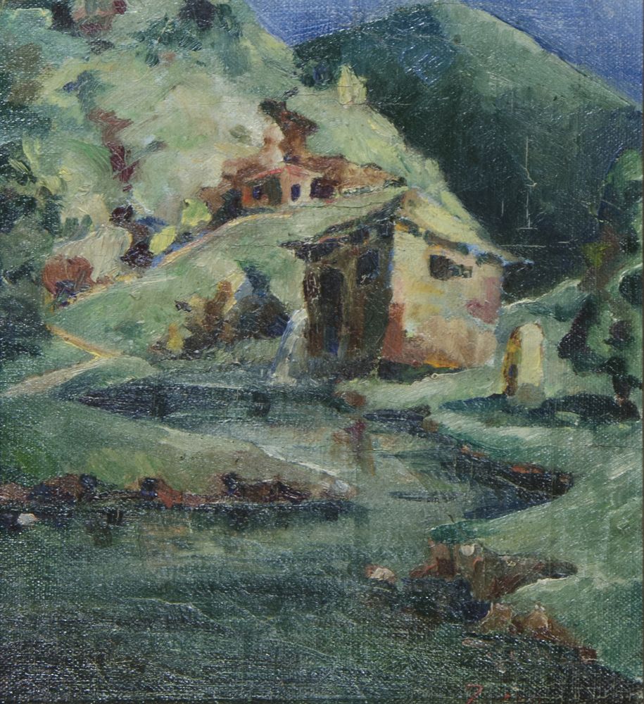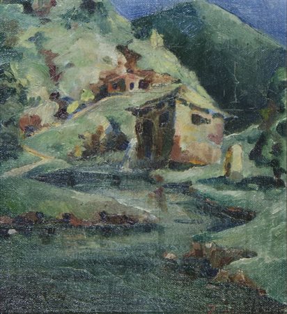 Klavdij Zornik 1910-? "Piccolo paesaggio" cm. 23x20 - oio su tavola Firmato al retro.