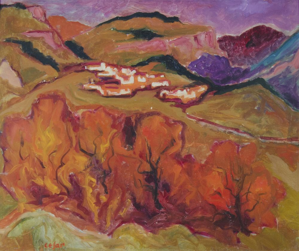 Joze Cesar 1907-1980 "Paese tra i monti" cm. 50x60 - tecnica mista su compensato Firmato b. a s.
