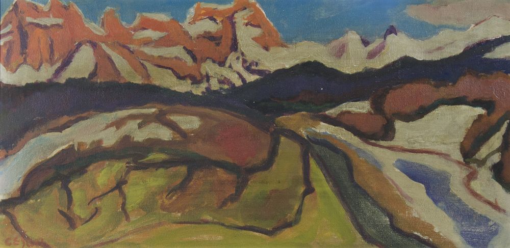 Joze Cesar 1907-1980 "Neve sulle montagne" cm. 30x60 - tecnica mista su compensato Firmato b. a s.