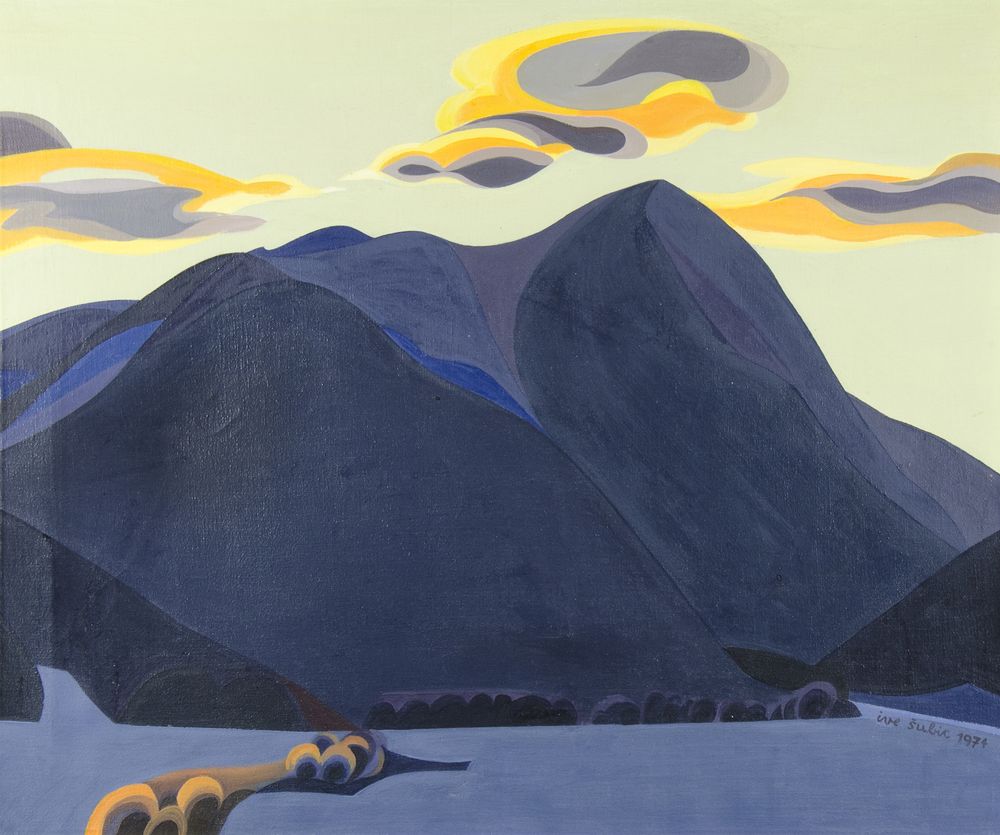 Ive Subic 1922-1989 "Il monte Lubnik" cm. 50x60 - olio su tela Firmato b. a d. e datato 1974. Al retro dati dell'opera.