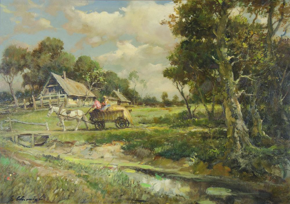 Giuseppe Chiacigh Wladikawkaz 1895-Trieste 1967 "Ritorno a casa" cm. 68x98 - olio su faesite Firmato b. a s.