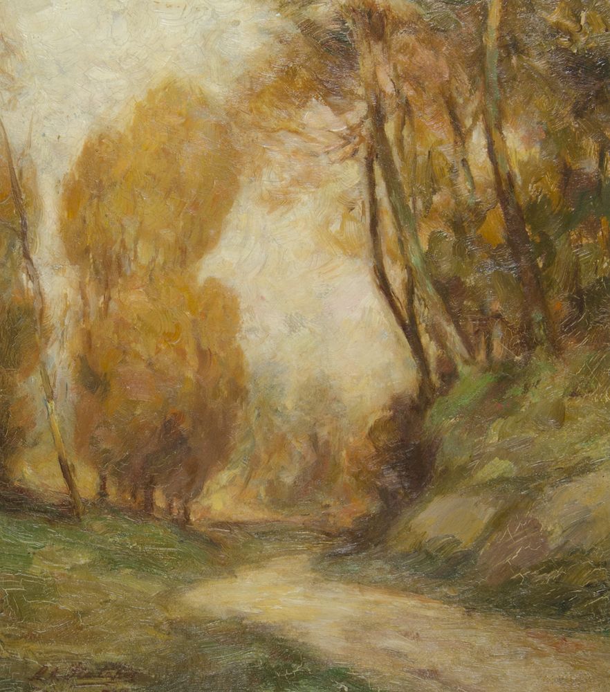 Alberto Slataper 1870-1935 "Bosco in autunno" cm. 40x34 - olio su cartone Firmato b. a s. e datato 1928.