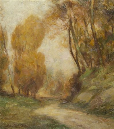 Alberto Slataper 1870-1935 "Bosco in autunno" cm. 40x34 - olio su cartone...
