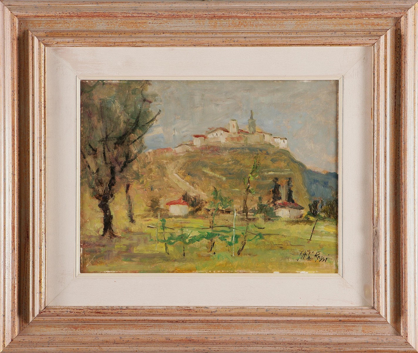 ROSSI ATTILIO (1909 - 1994) Paesaggio. Olio su cartone telato, cm 40x30. Firmato in basso a destra. Cornice presente.