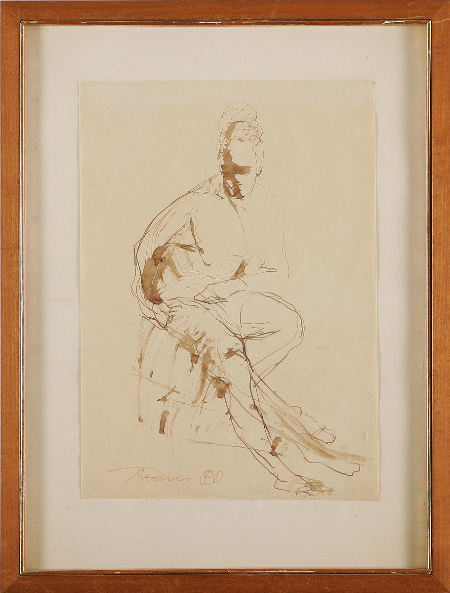 RUMI DONNINO (1906-1980) Ritratto di donna seduta. China su carta. Cm 32,5x22,5. Firma in basso a sinistra.