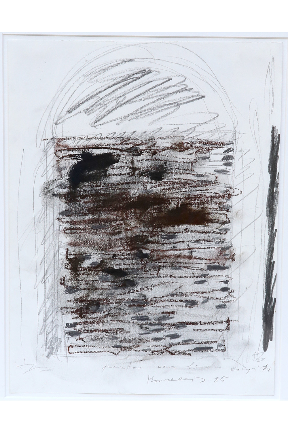 Jannis Kounellis portone con lancia carboncino e grafite su cartoncino...