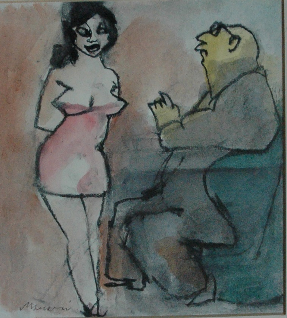 Mino Maccari 25x27 acquerello su carta archivio Maccari