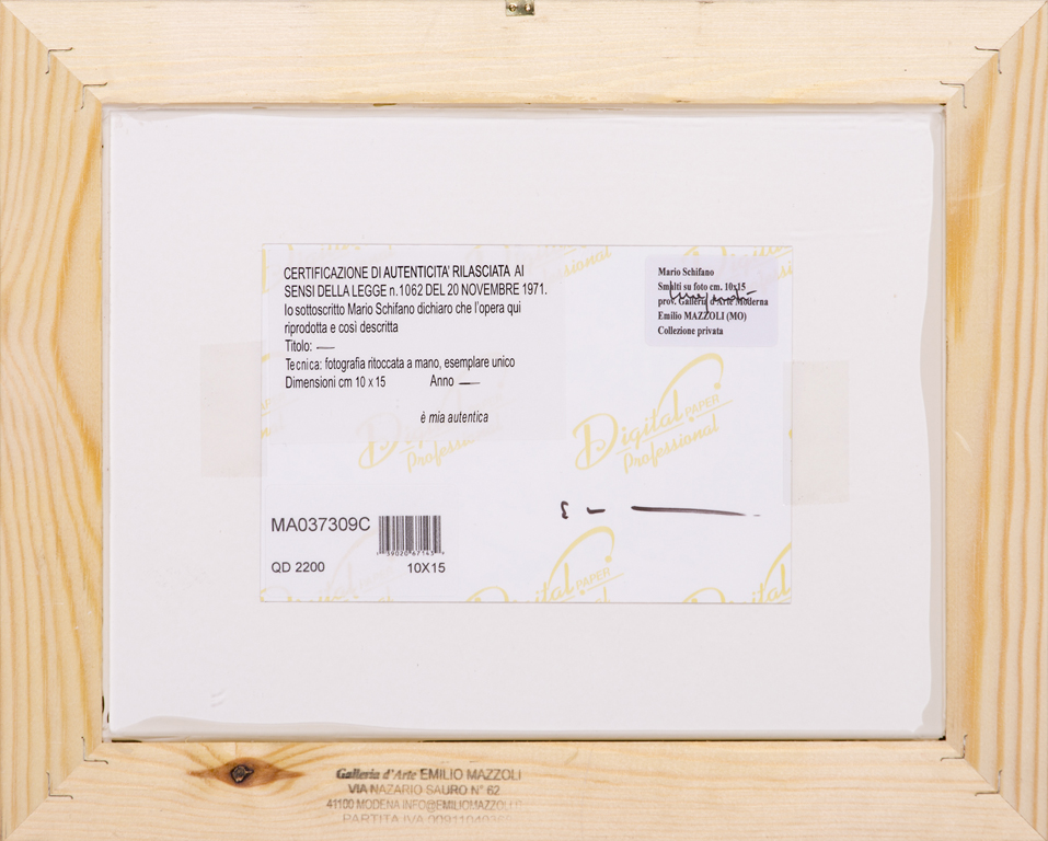 Etichetta della Galleria d'Arte Emilio Mazzoli (MO) al retro