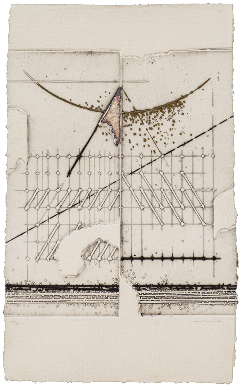 WALTER VALENTINI (1928)Il muro del tempo, 1990Incisione con aggiunte manuali...
