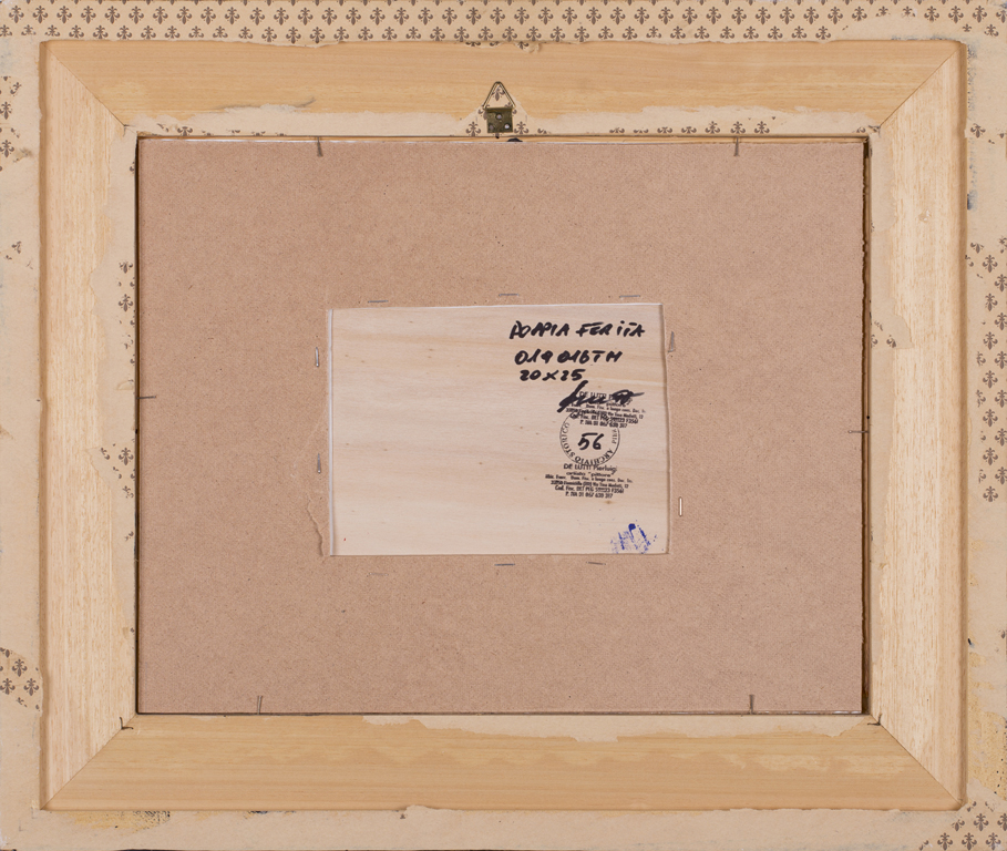 Firma, timbri dell'Artista, numero di repertorio, titolo e misure al retro