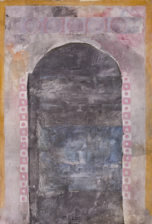 PIERO MOSTI (1941)Muro e portone, 1998Affresco su tavolacm 61x41,5x2Firma al...