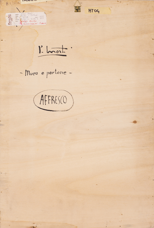 Lot 173 | PIERO MOSTI (1941)Muro e portone, 1998Affresco su tavolacm 61x41,5x2Firma al...