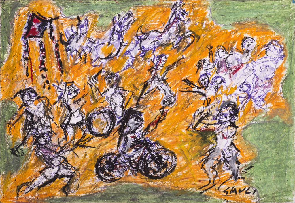 PIERO GAULI (1916-2012)Lotto unico composto da:Giochi, 1970Pastelli a olio su...