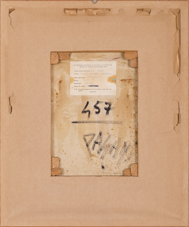 ENZO PAGANI (1920-1993)FunamboliOlio su telacm 40x30Firma al fronteFirma e...