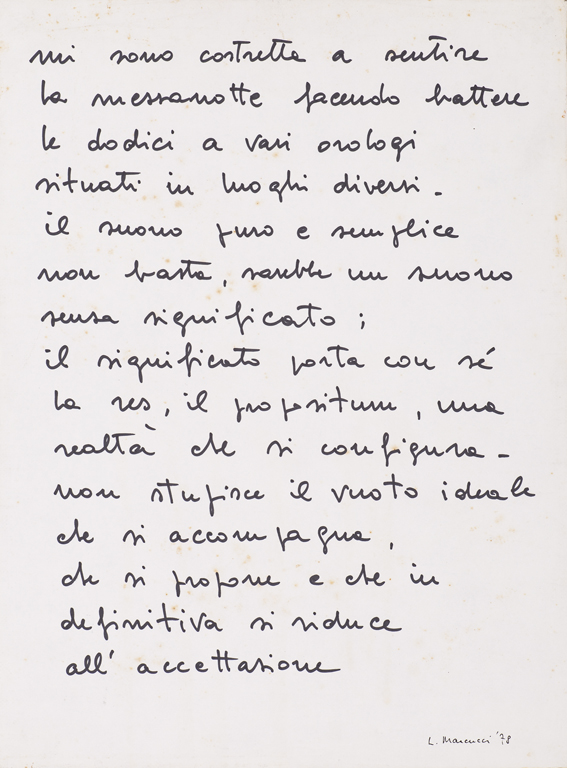 LUCIA MARCUCCI (1933)La mezzanotte, 1978Scrittura su cartacm 44x33Firma e...