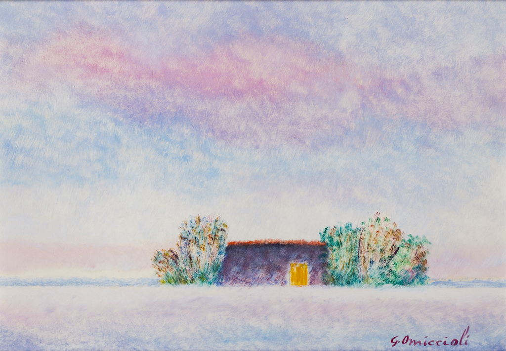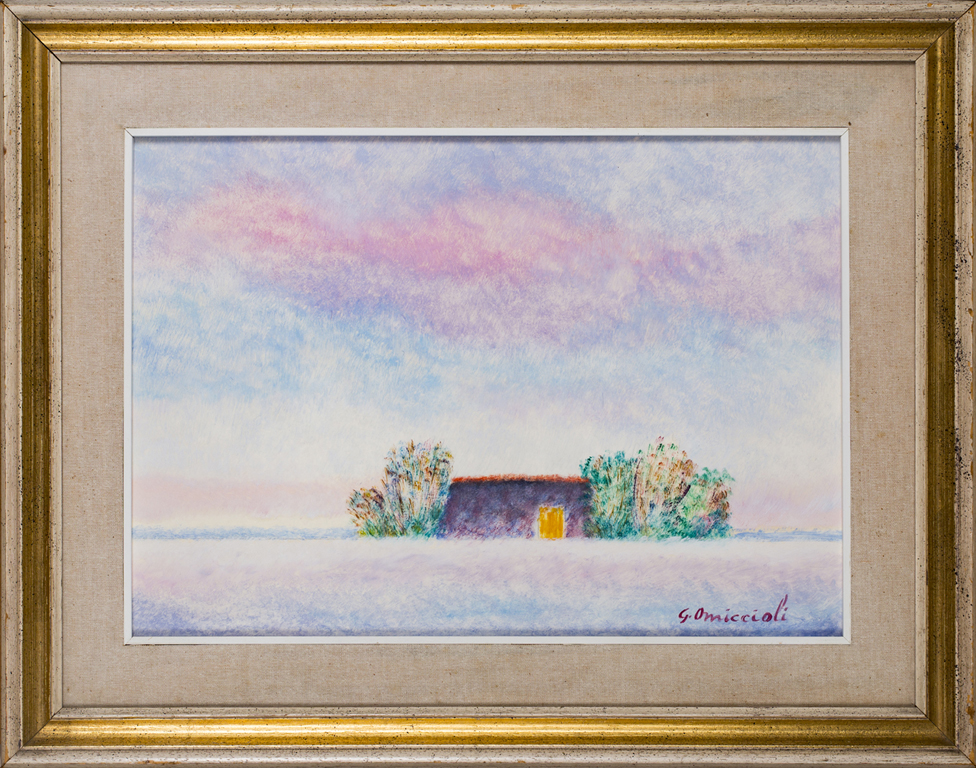 GIOVANNI OMICCIOLI (1901-1975)Capanna a PassoscuroTecnica mista su cartonecm...