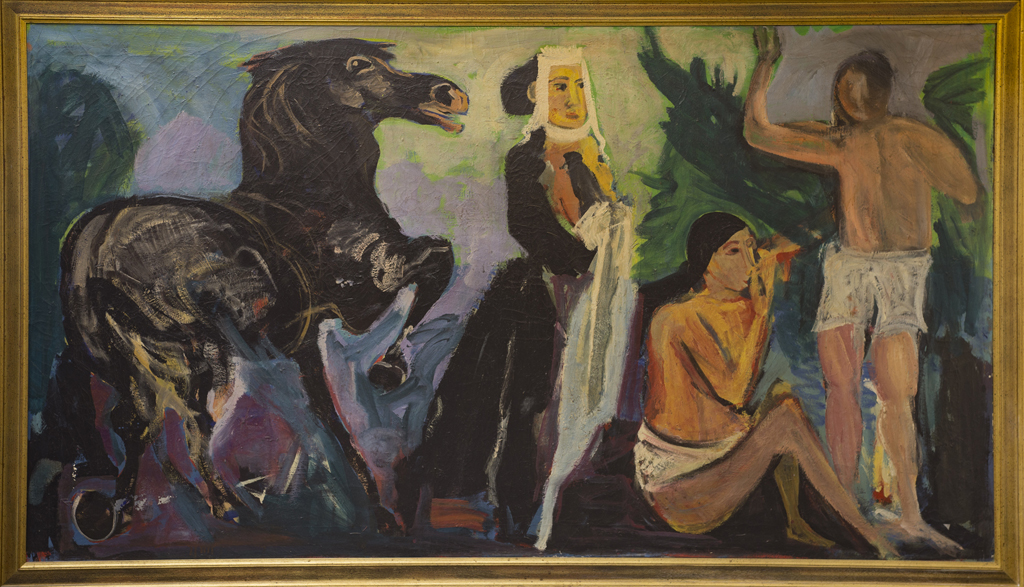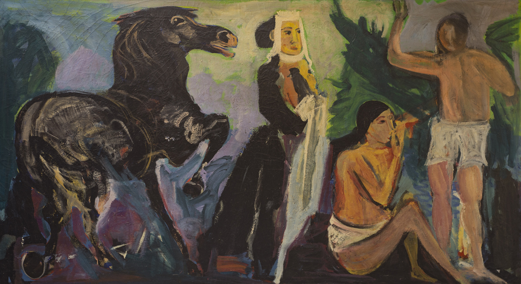 PIERO MAGGIONI (1931-1995)Tentazione, 1983Olio su telacm 146x258Certificato...