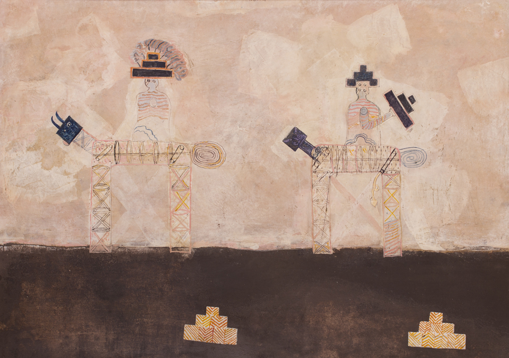GUSTAVO FOPPIANI (1925-1976)I due cavalieri, 1976Tempera su tavolacm...