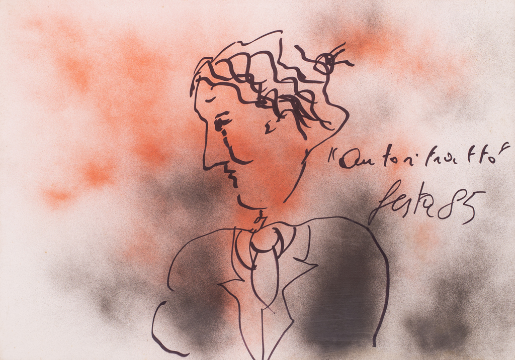 TANO FESTA (1938-1988)Autoritratto, 1985Tecnica mista e spray su cartoncinocm...
