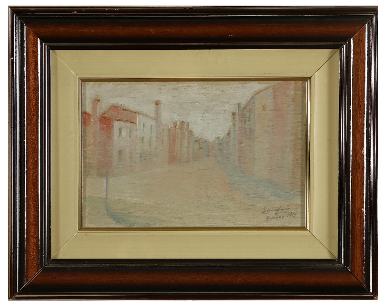 SEMEGHINI PIO (1878 - 1964) Burano 1913. Olio su tavola, cm 27x18. Opera archiviata presso la Fondazione Pio Semeghini (VR) come da documentazione fotografica allegata riportante numero d'archivio. Anni '40. Firma in basso a destra. Cornice presente.