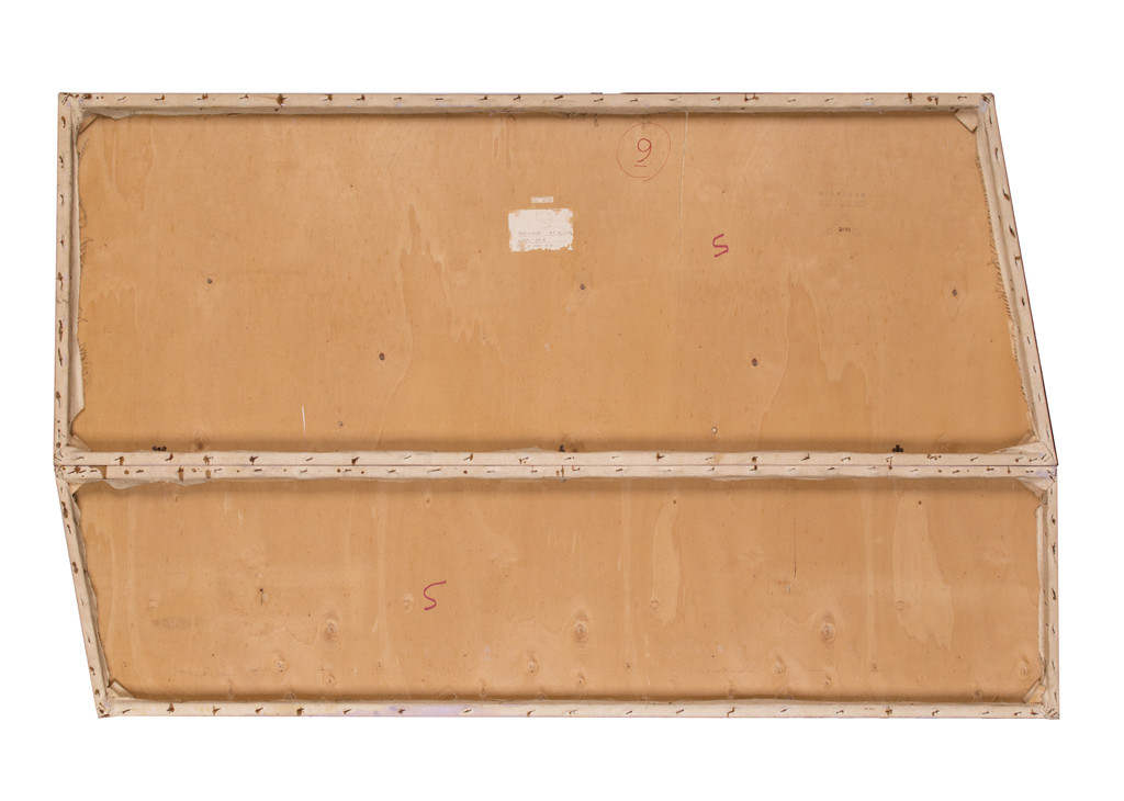 Etichetta con titolo, datazione, numero di catalogazione (42A), misure e timbro dello studio dell'Artista (Milano, Via Cappuccini 8) al retro