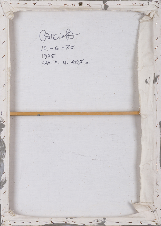 Timbro della Galleria d'Arte La Bertesca (Düsseldorf) al retro sul telaio