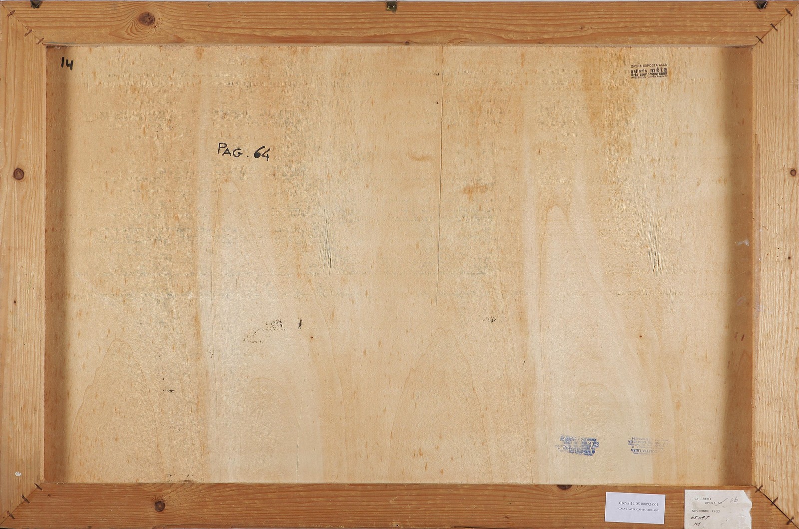 TANCREDI PARMEGGIANI (1927 - 1964) Senza titolo. 1953 Tempera su carta, cm 65,5x97,5. Opera pubblicata su "Tancredi, i dipinti e gli scritti" a cura di Marisa Dalai Emiliani, con la collaborazione di Silvia Mascheroni e Cecilia Scatturin, tavola n.477, Volume Secondo. Umberto Allemandi & C.. Al retro reca il timbro della Galleria Meta, Bologna. Cornice presente.