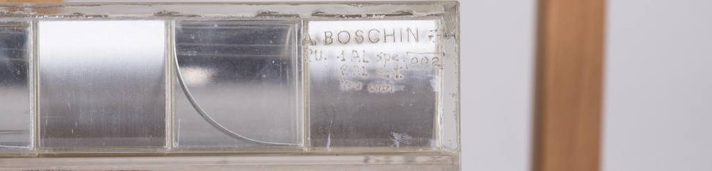 Firma, datazione, tecnica e titolo incisi sul plexiglass
