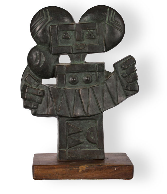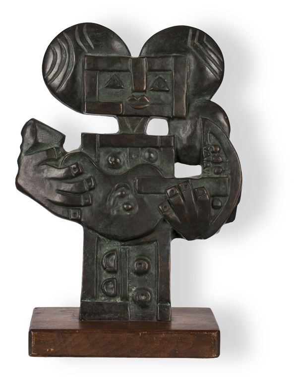 IBRAHIM KODRA (1918-2006)MusicanteScultura in bronzo su base in legnocm...