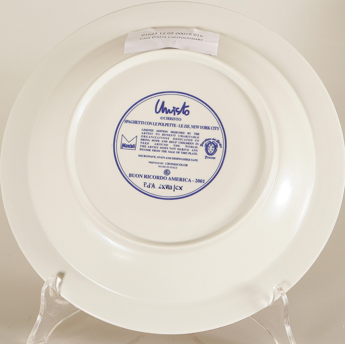 CHRISTO (n. 1935) Spaghetti con le polpette-le zie, New York City. 2001 Multiplo su ceramica, cm 25,5. Stampato da Decoritalia, Buon ricordo America, Inc. PDA LXVIII/CX