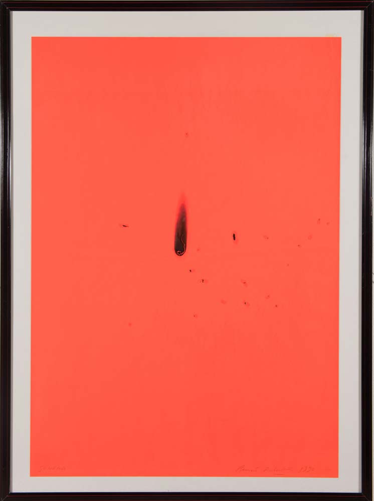 Bernard Aubertin (Fontenay-aux-Roses 1934 – Reutlingen 2015), “SEMEMA”, 1990. Combustione su carta rossa, firmata in basso a destra Bernard Aubertin 1990, titolato in basso a sinistra Semema, H cm 100x70