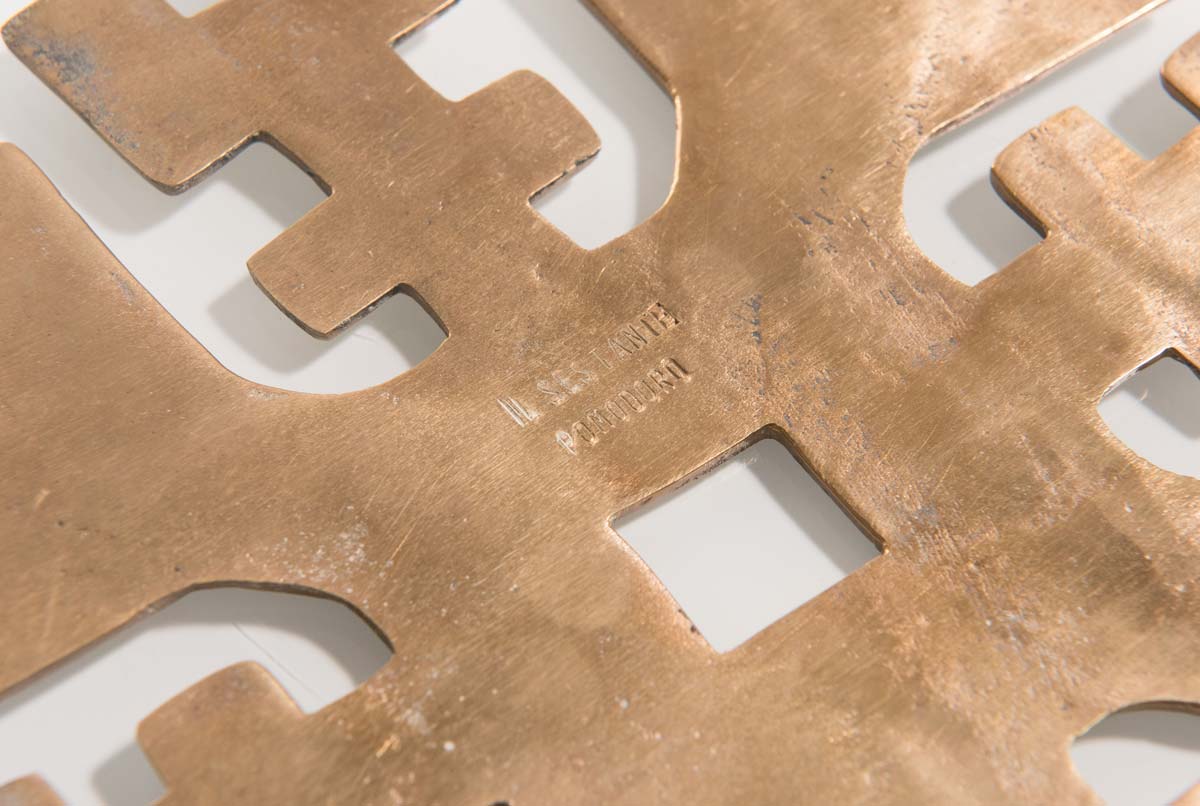 Arnaldo Pomodoro (Morciano di Romagna 1926), “Il Sestante”. Scultura in bronzo, iscrizione al retro ‘Il Sestante – Pomodoro’, H cm 24x23
