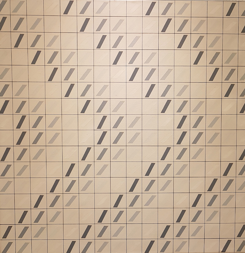 Walter Fusi (Udine 1924 Firenze 2013) 049, 1975 Olio su tela, cm. 100x100. Sul verso: firma, data e titolo. Timbro "Galleria Giraldi", Livorno.
