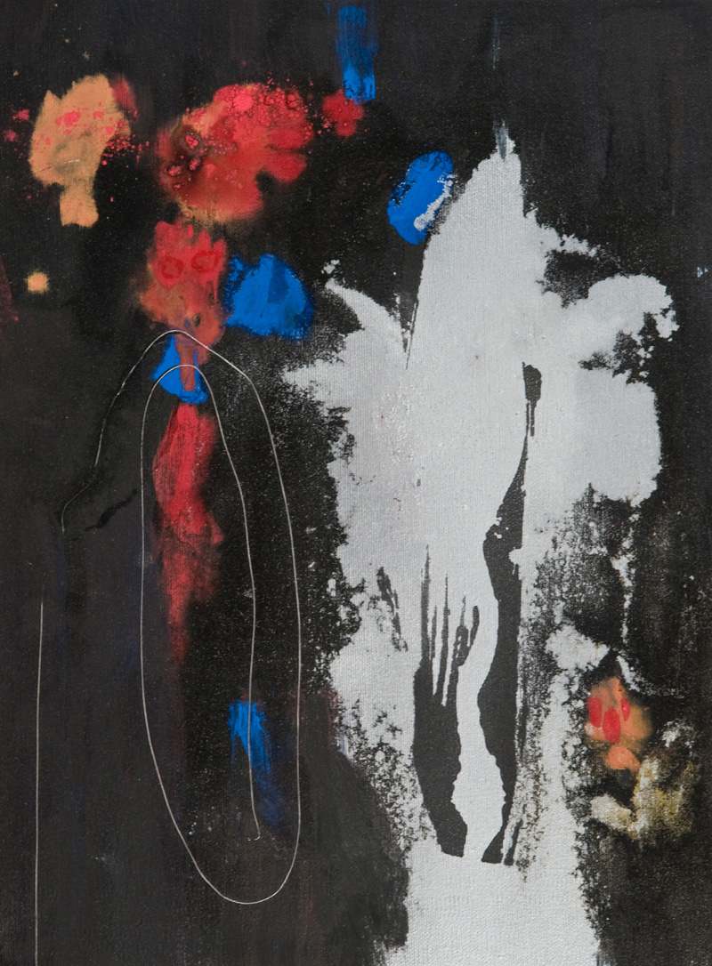 Achille Pace (Termoli (Cb) 1923) Senza titolo, 2005 Olio e filo su tela, cm. 40x30 Sul verso: firma e data. Autentica dell'Artista su foto.