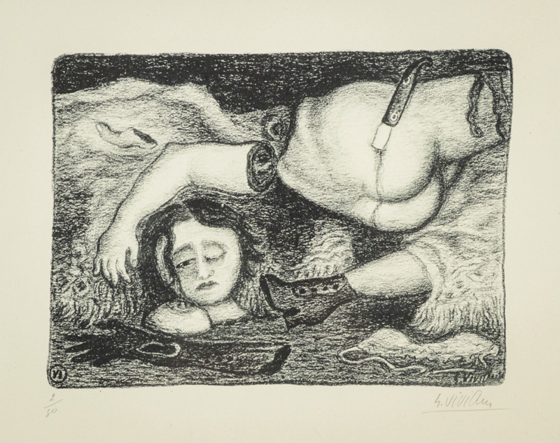 Giuseppe Viviani (Agnano (Pi) 1898 Pisa 1965) Da Romanzo nero, Tavola VI 1946 Litografia su carta, cm. 30x40, es. 2/80 Firma in basso a destra, tiratura in basso a sinistra. Bibliografia: Nicola Miceli "Viviani - Litografo", ediz. B&V, pag. 35 e 116.