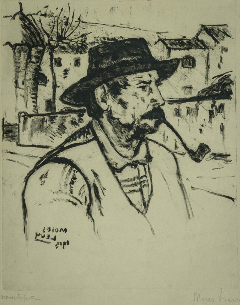 Moses Levy (Tunisi 1885 Viareggio 1968) Campagnolo con la pipa 1915 Monotipo policromo su cartoncino, cm. 45x35. Firmato in basso a destra. Bibliografia: Incisioni di Moses Levy 1885-1968 a cura di Alessandra Giannotti e Claudio Pizzorusso, Gabinetto Disegni e Stampe degli Uffizzi LXXXIV, edizioni Leo S. Olschki, 1999. Esposizione: "Dallo studio di Moses Levy alla collezione di Enrico Pea", incisioni, disegni e carboncini realizzati prima del 1916, dal 17 Febbraio - 11 Marzo, 2012, Sala dei Putti e del Capitolo, Chiostro di Sant’Agostino, Pietrasanta, a cura di Antonella Serafini e Valentina Fogher, pubblicato sul catalogo della mostra.